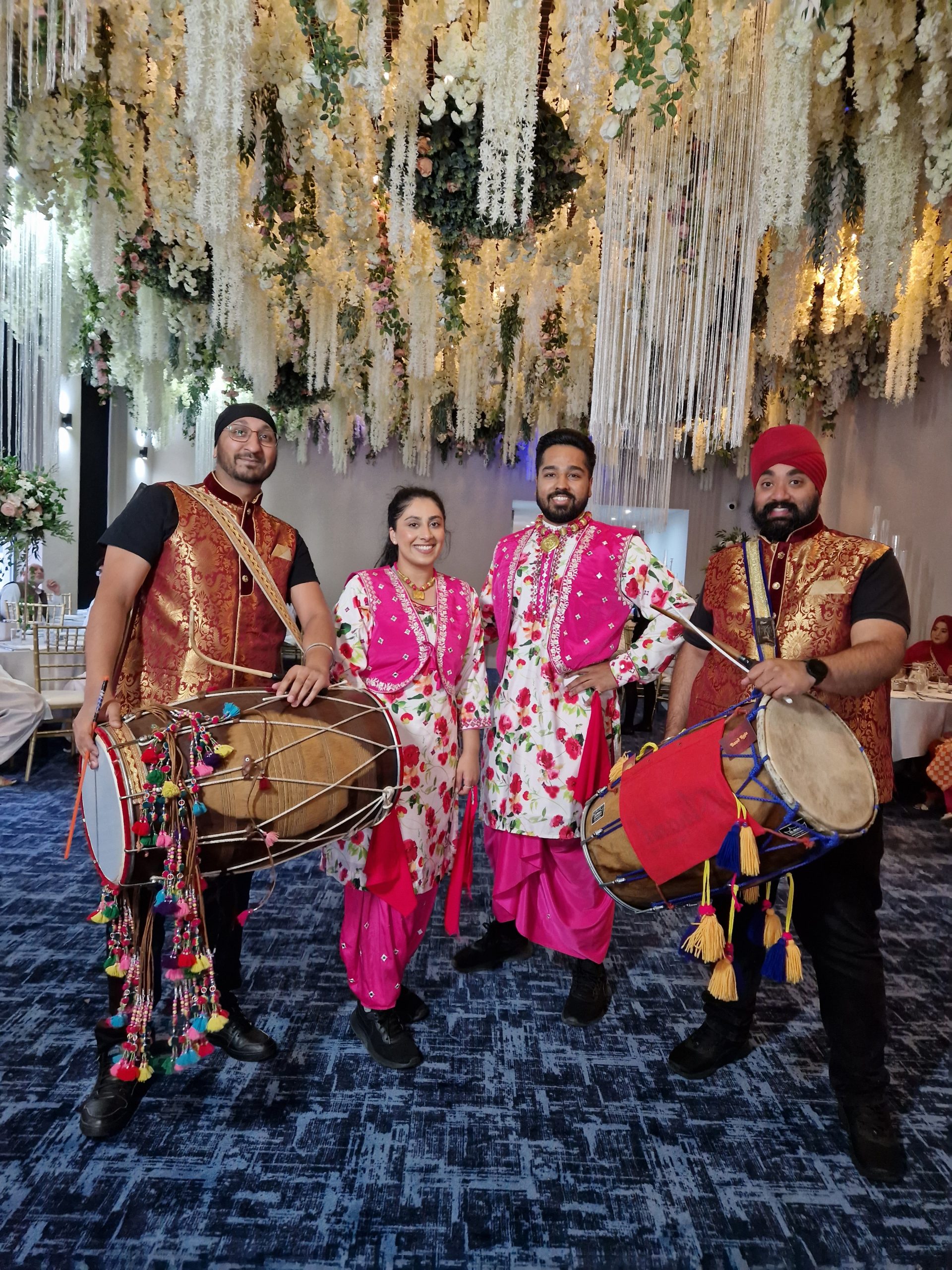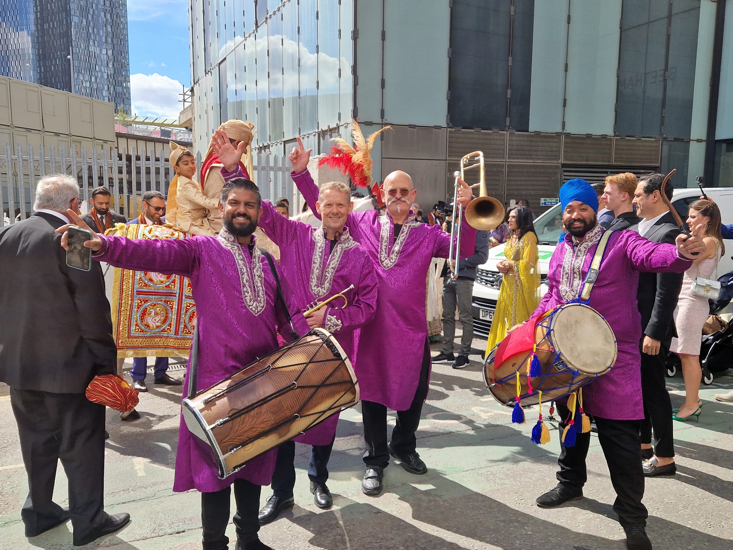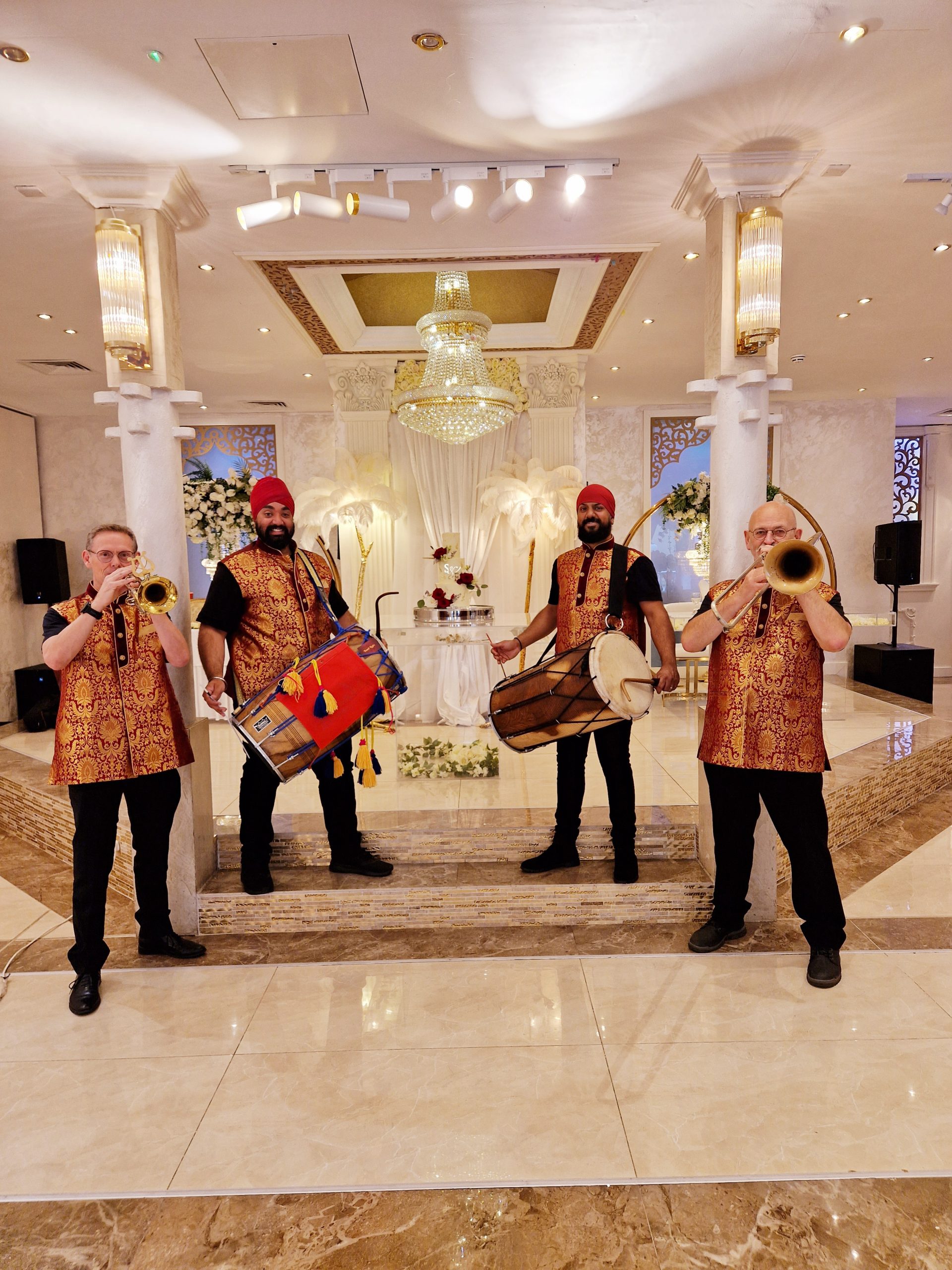 We bring vibrant brass sounds of the West and combine them with the authentic beats of the Punjabi Dhol.
