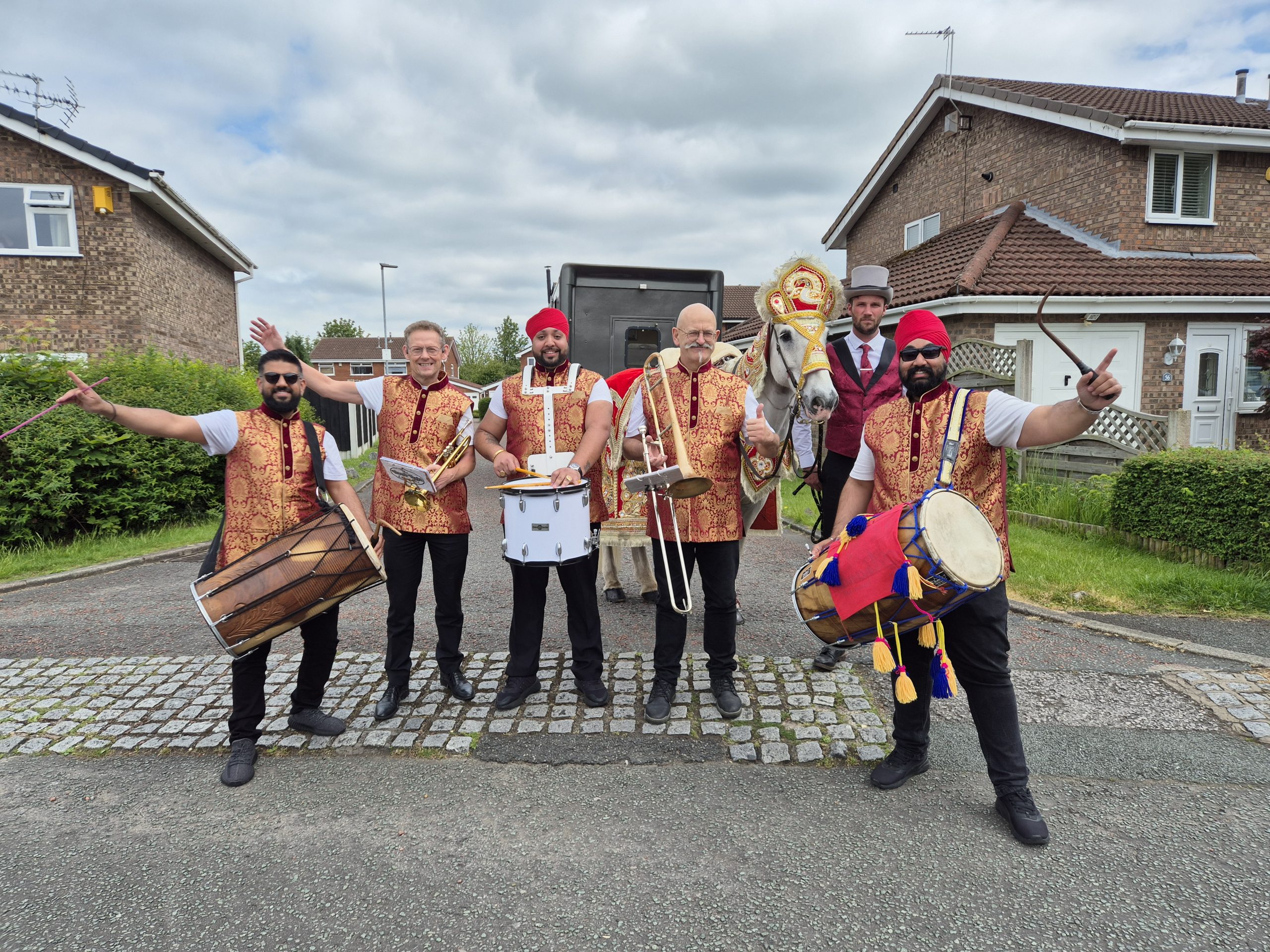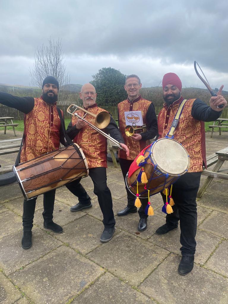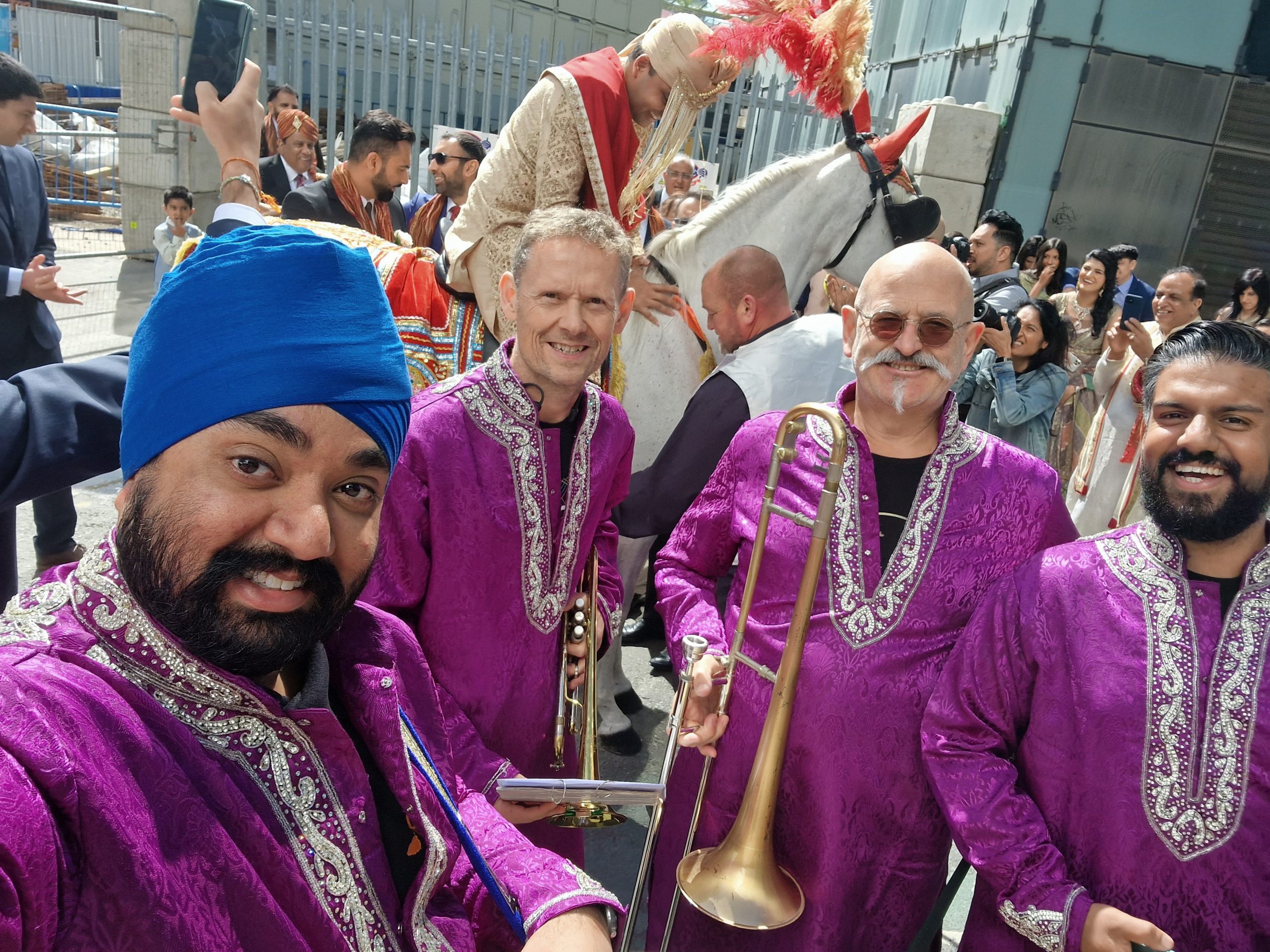 We bring vibrant brass sounds of the West and combine them with the authentic beats of the Punjabi Dhol.